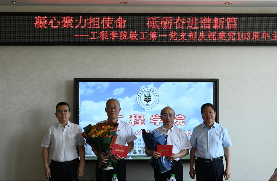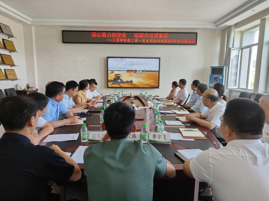 王熙同志和赵军同志先后分享入党初心故事。王熙以自身“垦二代”的经历,分享自己从教以来的业绩成果,始终都是立足八一农大,坚持培养多名本硕博学生,投身建设北大荒,并积极将科研成果在垦区转化应用,切实解决农业机械方面的实际问题,着力践行用科技和人才武装、支援垦区。赵军分享自己的入党经历,并表示继续将北大荒精神融入教学科研,赓续红色基因,不断培养“知农爱农强农兴农”新型应用型人才。